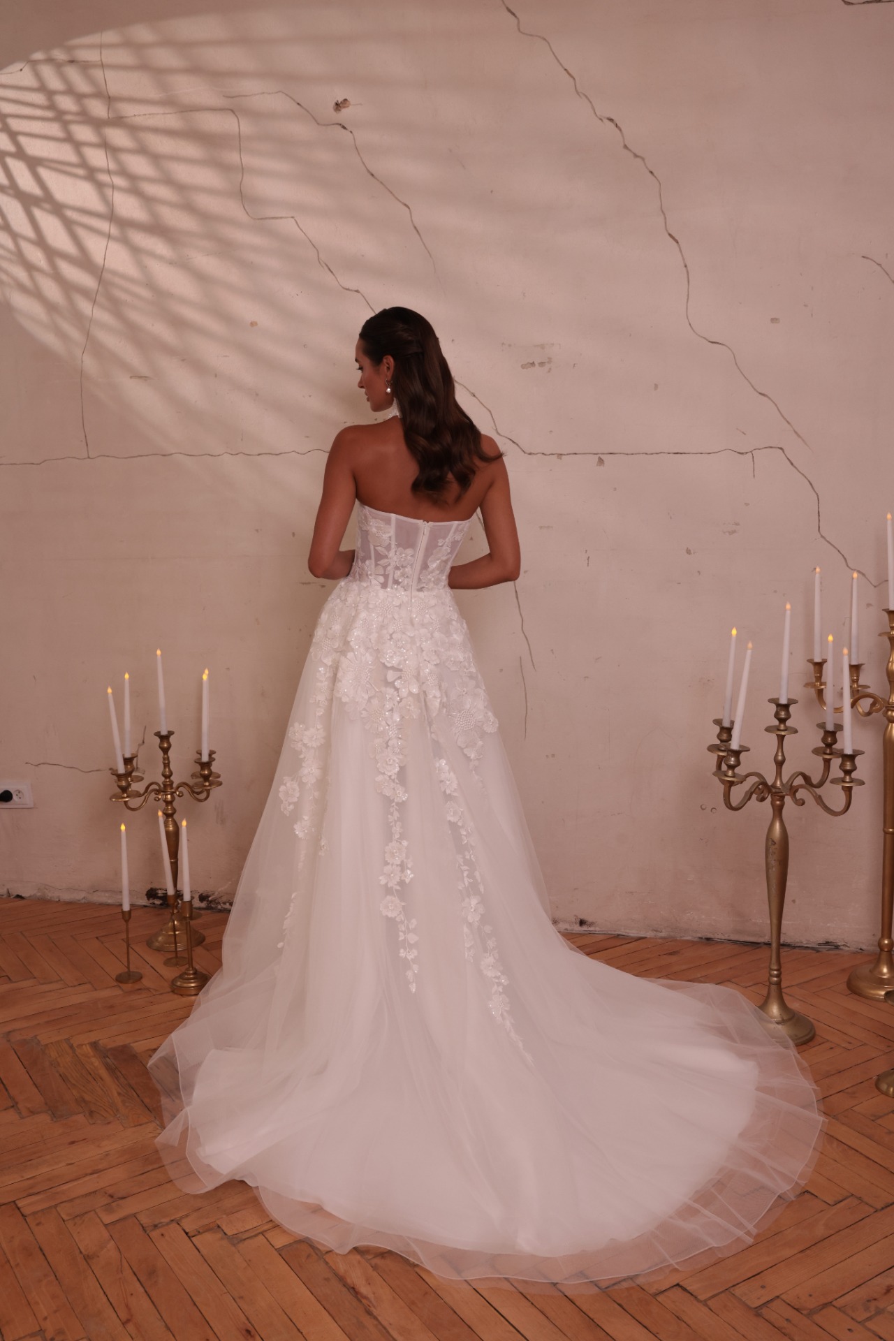 Ozdobné rukávy dotvárajú romantický charakter šiat a prinášajú jemný, éterický nádych. VIKTÓRIA je ideálnou voľbou pre svadbu v kaštieli, romantický obrad v prírode aj modernú mestskú svadbu.